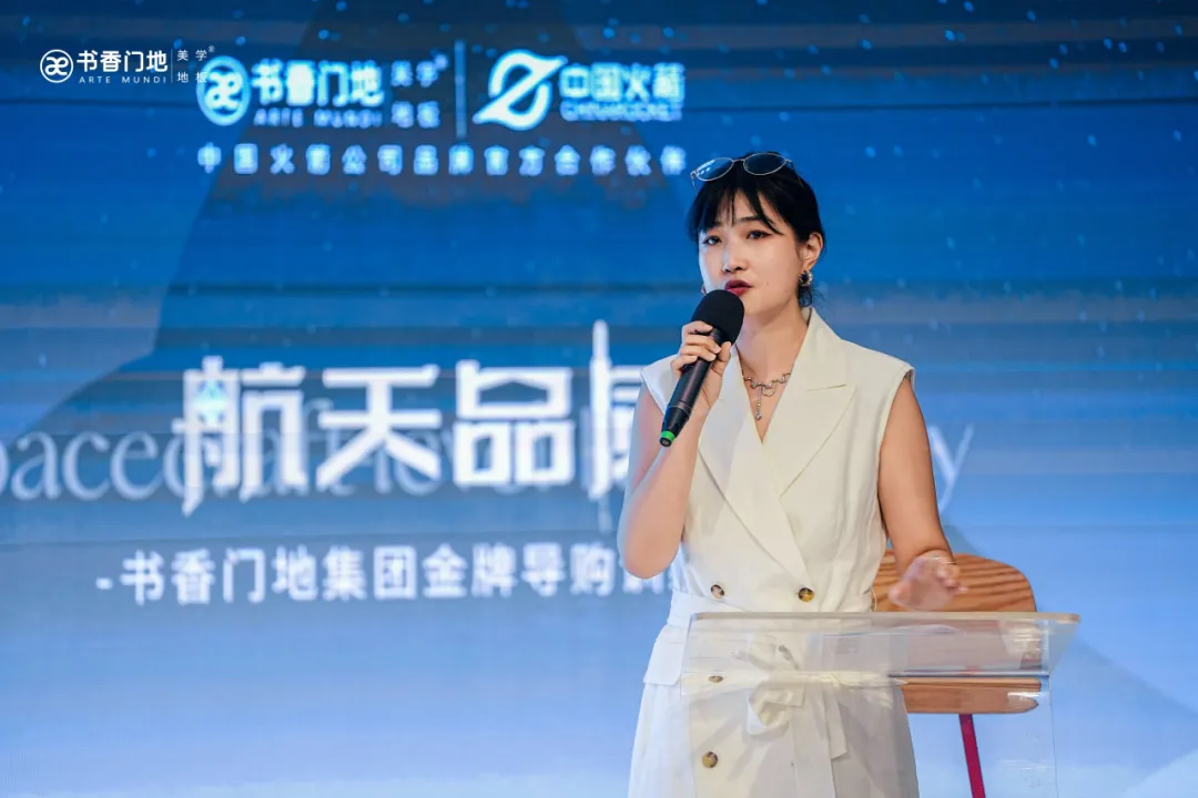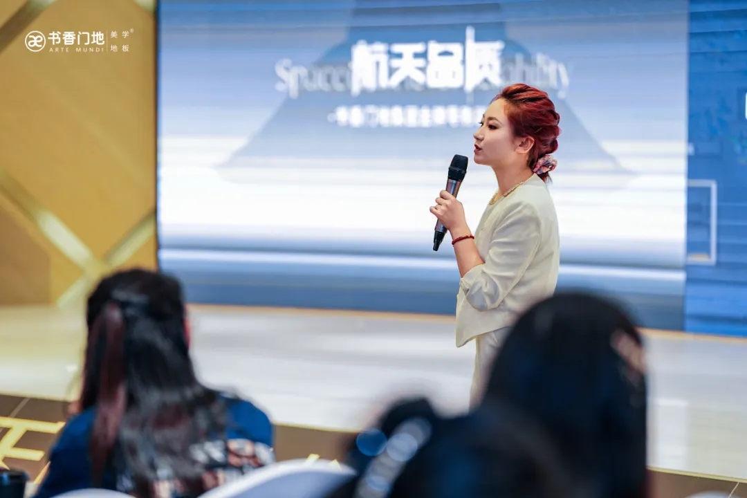 ▲书香门地集团市场部总经理胡玉姣 分享《书香门地品牌宣讲》