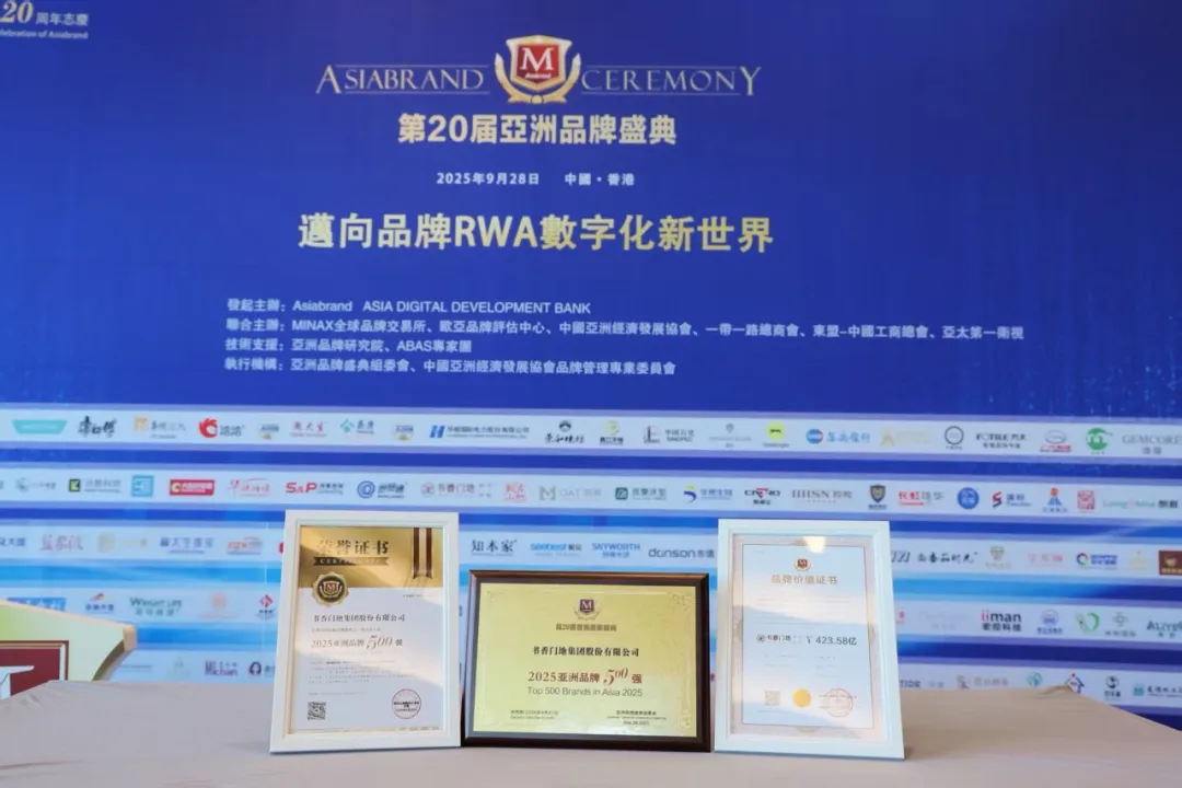 9月28日,以 “迈向品牌RWA数字化新世界” 为主题,由专业品牌评价机构Asiabrand和亚洲数字发展银行发起主办,MINAX全球品牌交易所、欧亚品牌评价中心、中国亚洲经济发展协会、一带一路总商会、东盟-中国工商总会和亚太第一卫视等机构联合主办的“第20届亚洲品牌盛典”在香港隆重举行。备受瞩目的 “2025亚洲品牌500强”榜单也同期发布,书香门地集团再登荣誉榜单,与华为、国家电网、抖音、工商银行、阿里巴巴、华润集团、比亚迪、丰田、三星、索尼等品牌共同登榜“2025亚洲品牌500强”荣誉。